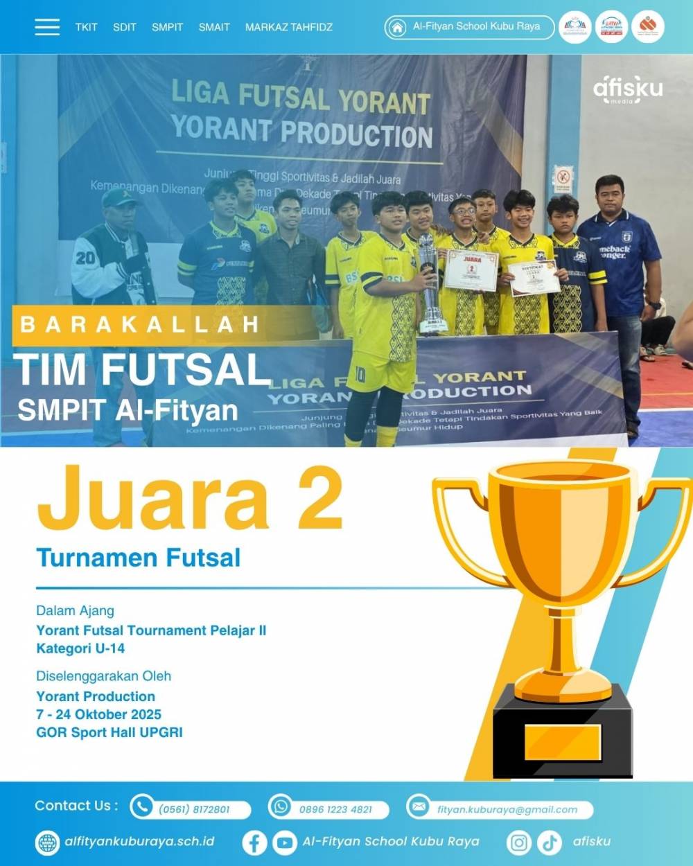 Juara 2 Turnamen Futsal (Yorant Futsal Tournament Pelajar II) SMPIT Afisku