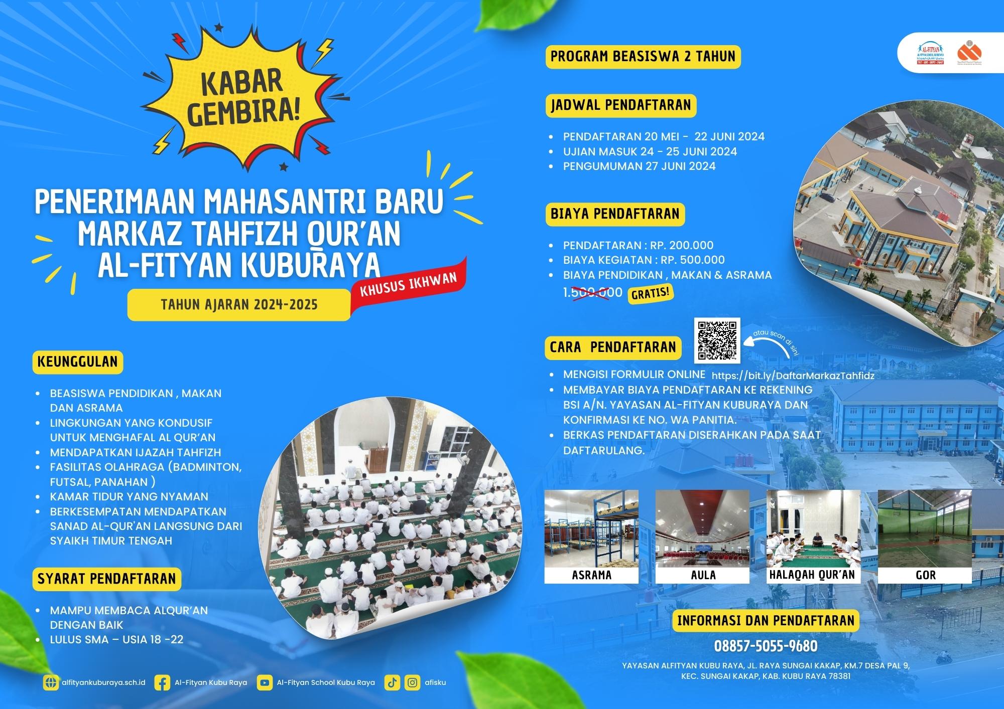 Open Registration Markaz Tahfizh Qur'an Yayasan Al Fityan Kubu Raya